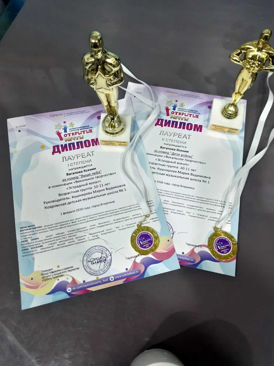 Ксения была награждена дипломом Лауреата I степени за вокальный номер "Выше неба" и дипломом Лауреата II степени за исполнение песни "Дети войны".