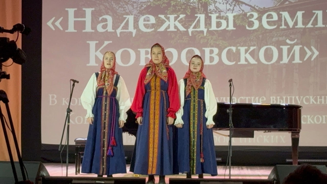 - Трио в составе: София Рождественская, Екатерина Касаткина и Ольга Нефёдова, выпускницы Марины Александровны и Натальи Александровны Закатовых. Ныне - студентки I курса Владимирского областного музыкального колледжа им. А.П. Бородина. В акапельном исполнении трио прозвучала лирическая песня Меленковского района Владимирской области.